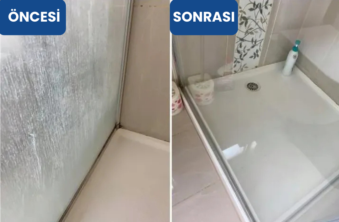 Banyo yeni temizlenmiş bile olsa, duşakabindeki su lekeleri, temizliği gölgeler.
